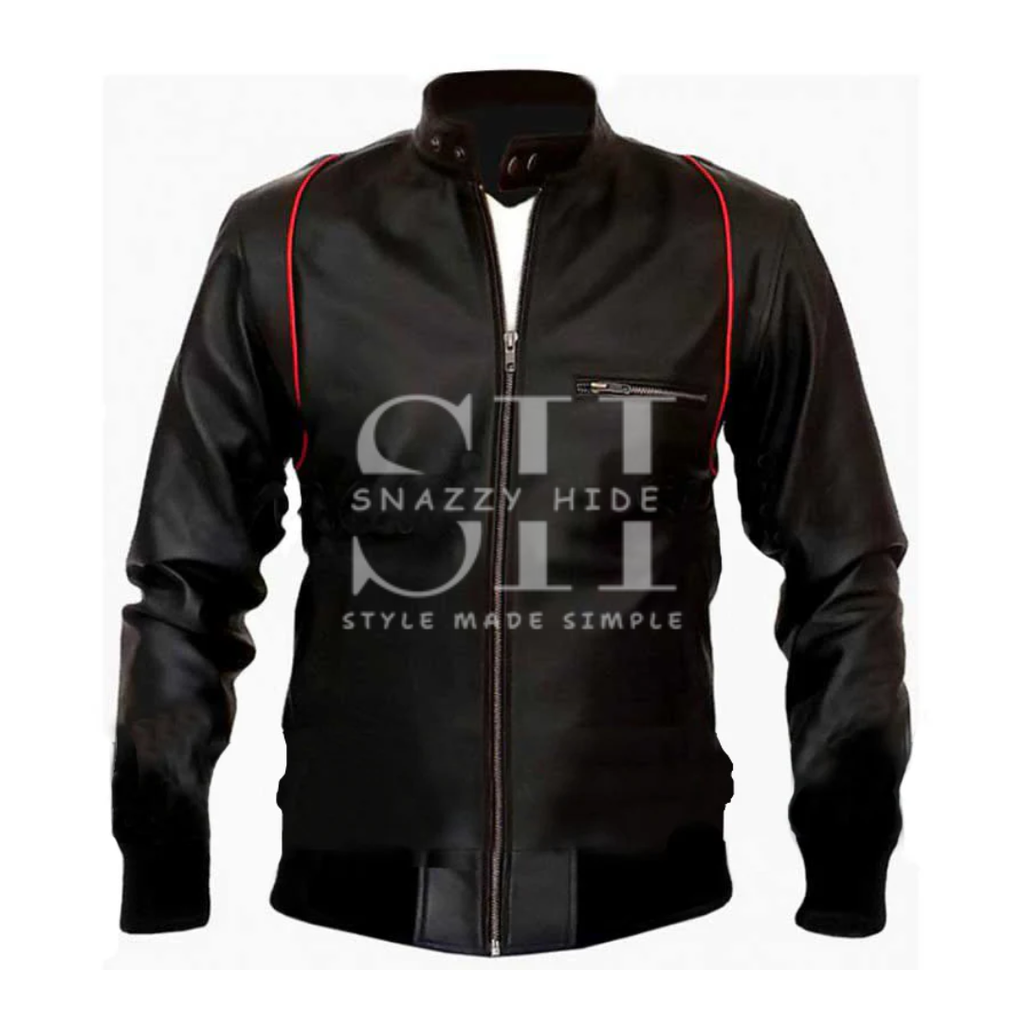 Redefine rebel elegance with the Viper Slim-Fit Biker Jacket, where iconic motorcycle heritage meets precision tailoring. This jacket distills the raw attitude of classic rider gear into a sharp, body-conscious silhouette designed for the modern man. In stark, uncompromising black, it emphasizes clean lines, a streamlined zipper, and a minimalist hardware approach—delivering a look of stealthy, urban sophistication.