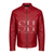- Design: Vibrant red leather jacket blending the classic café racer silhouette with aviator-inspired details.