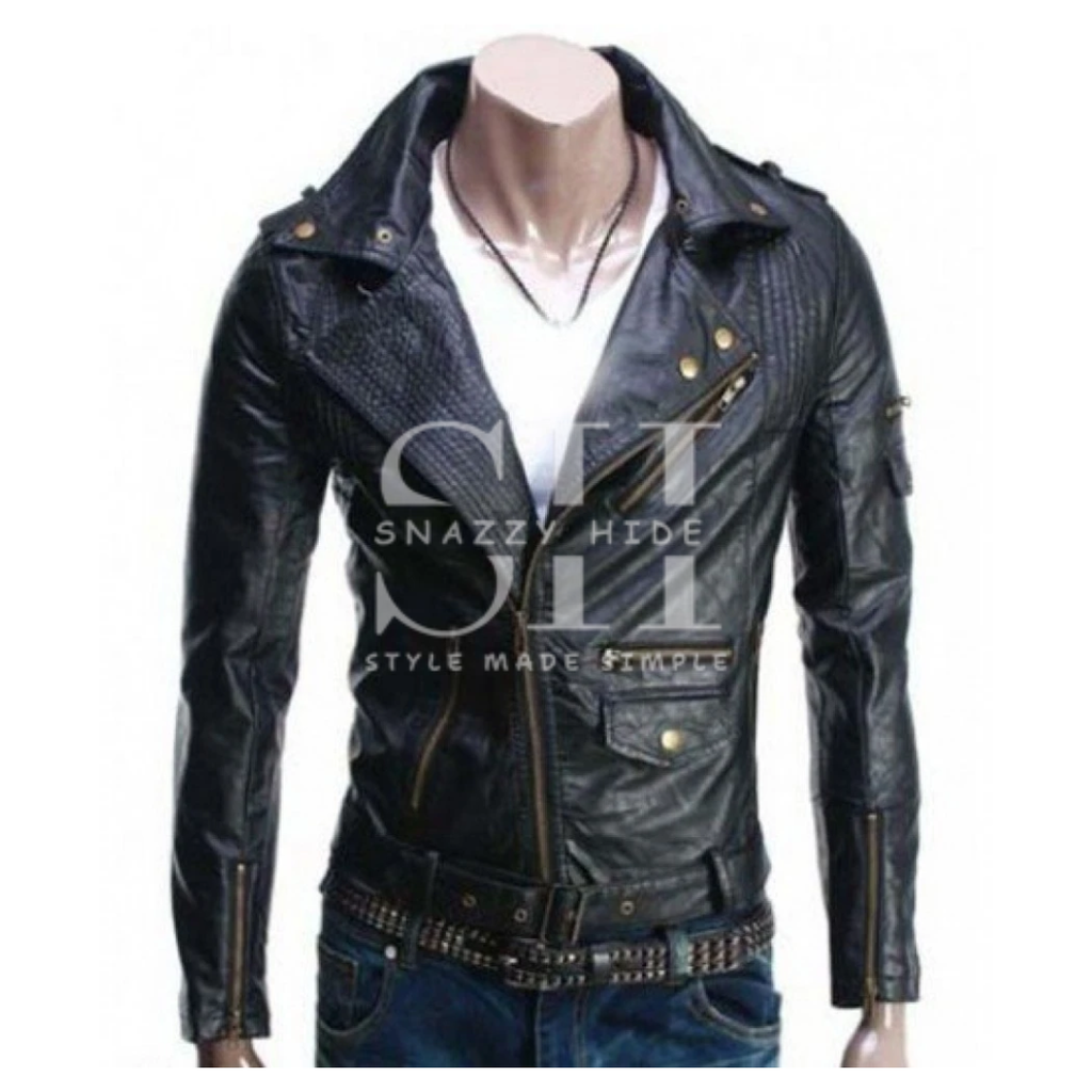 Step into a legacy of rebellion and refined style with our Slim Fit Black Leather Jacket Mens Biker. This jacket is the definitive fusion of classic motorcycle attitude and modern, tailored craftsmanship. The sharp, contemporary slim fit is designed to hug your frame, offering a clean and commanding silhouette that captures the rugged spirit of the open road without any unnecessary bulk. It’s the perfect piece for the man who demands both edge and sophistication.