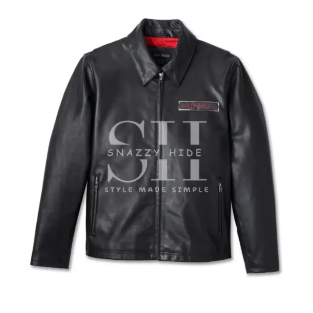- Design: Classic black Harley-Davidson motorcycle jacket featuring the iconic large-winged eagle emblem embroidered or printed across the back.