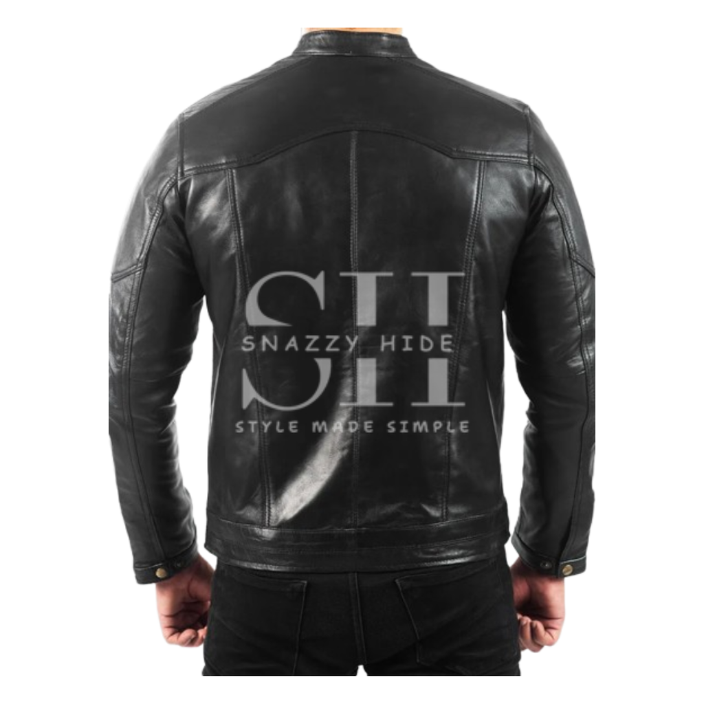 - Design: Rugged black biker jacket featuring diamond or channel quilting on the shoulders, sleeves, or body for texture and detail.