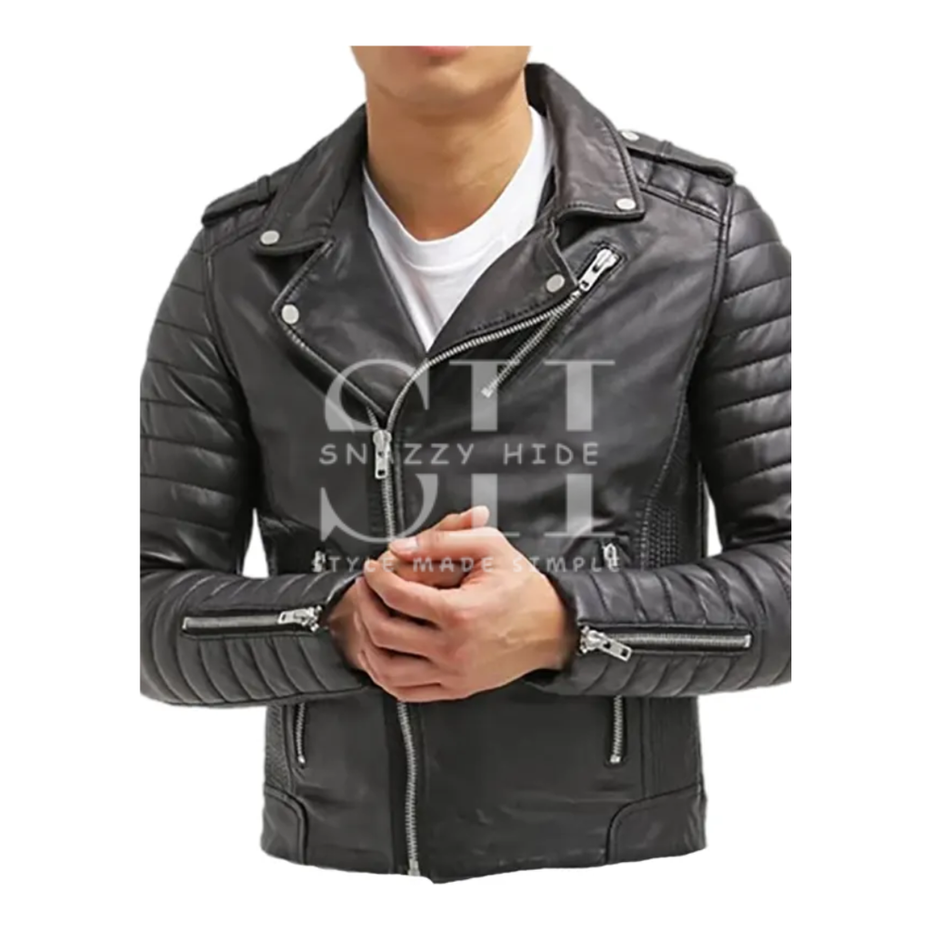 • Design: Sleek, body-hugging biker jacket with a sharp, tailored silhouette for a modern, aggressive look.