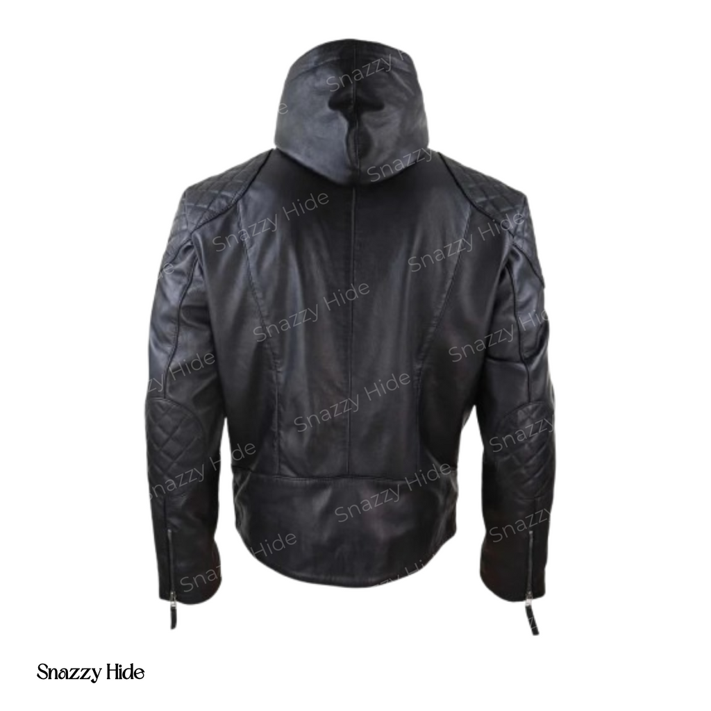 Add an urban edge to your wardrobe with the Men’s Leather Hooded Biker Jacket, a modern take on the classic biker style. Made from premium genuine leather, this jacket combines rugged durability with street-smart versatility.