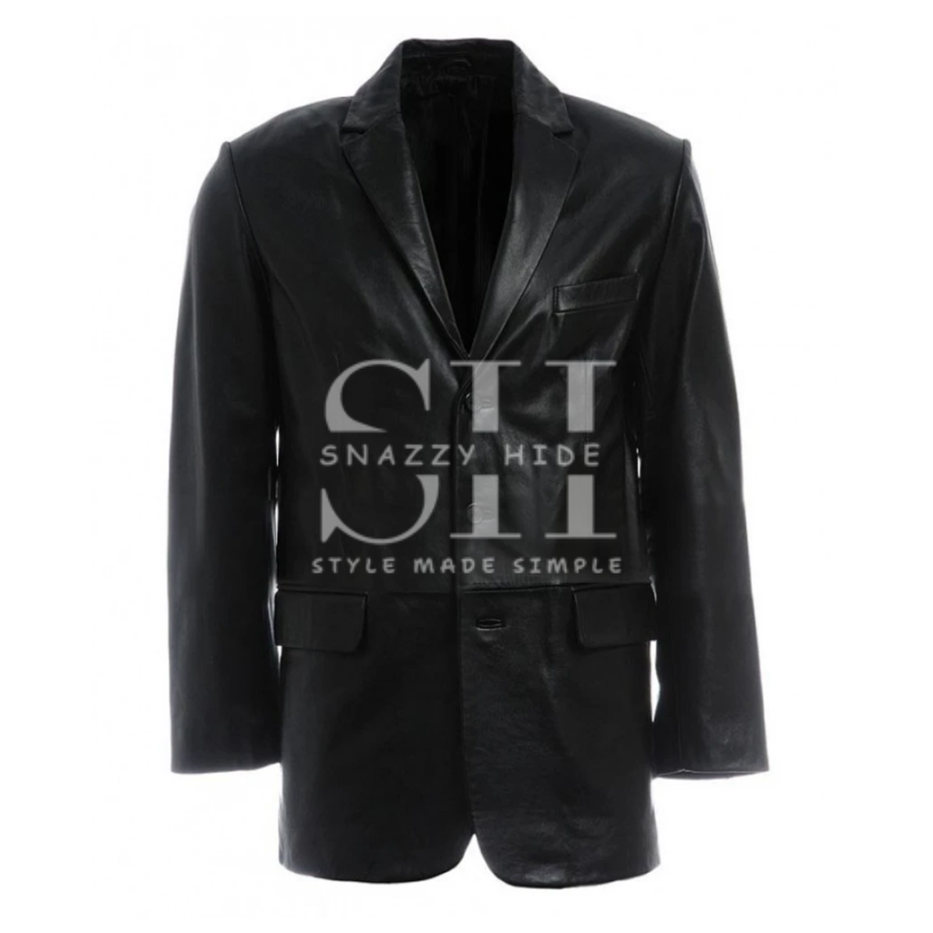 Introducing a new standard of tailored sophistication in leather with the Mens 3 Button Excelled Leather Jacket. This piece redefines the leather jacket by incorporating the refined structure of a blazer, featuring a sharp 3-button front closure that creates a sleek, vertical line and a distinctly polished profile. The word "Excelled" speaks to its superior craftsmanship and design, offering a look that seamlessly bridges the gap between rugged edge and boardroom-ready elegance.