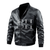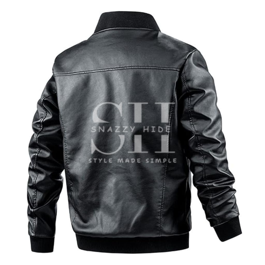 • Design: Slim-fit black leather jacket with a textured denim-like finish for a unique, rugged look.
