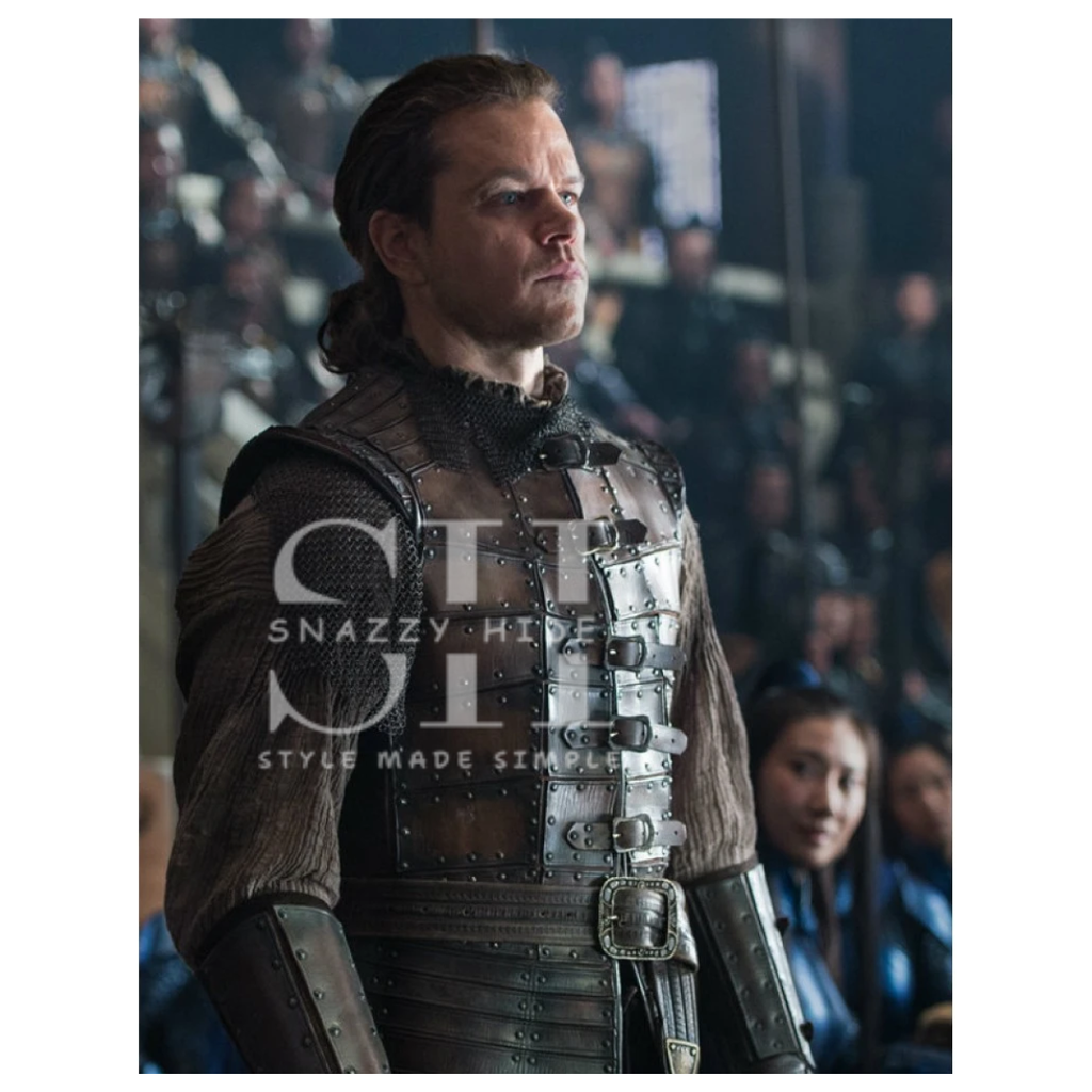 Step into the epic, battle-ready style of a fantasy-warrior mercenary. The Great Wall Matt Damon Movie Jacket is a bold, character-driven statement piece that captures the rugged durability and tactical design of William Garin’s armor in the visually stunning film. This jacket isn’t just outerwear—it’s a symbol of courage, survival, and ancient mystery, designed for those who stand against legendary threats.