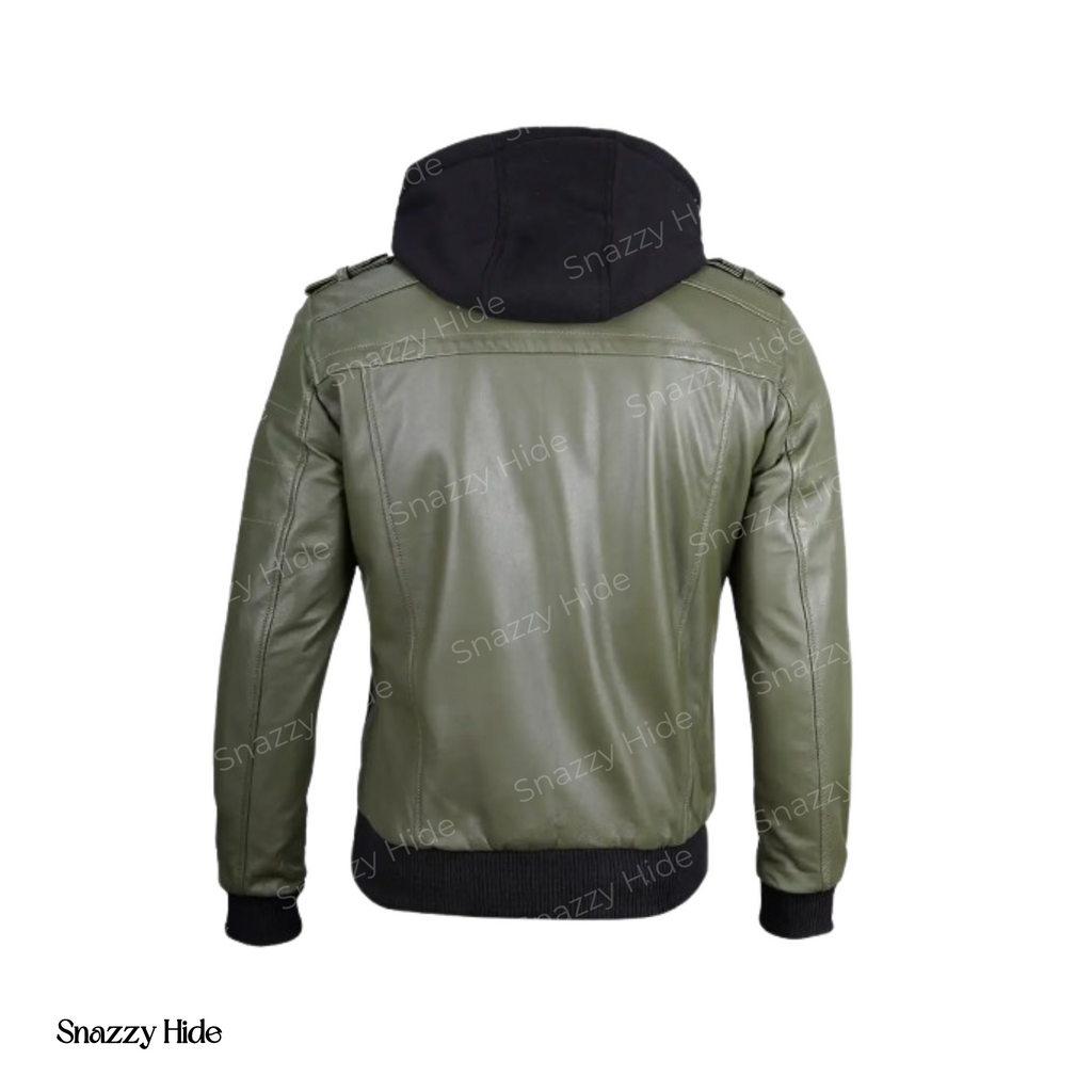 A timeless piece that blends functionality with refined design, the Army Green Bomber Leather Jacket is a wardrobe essential for men who value strength, style, and effortless cool.