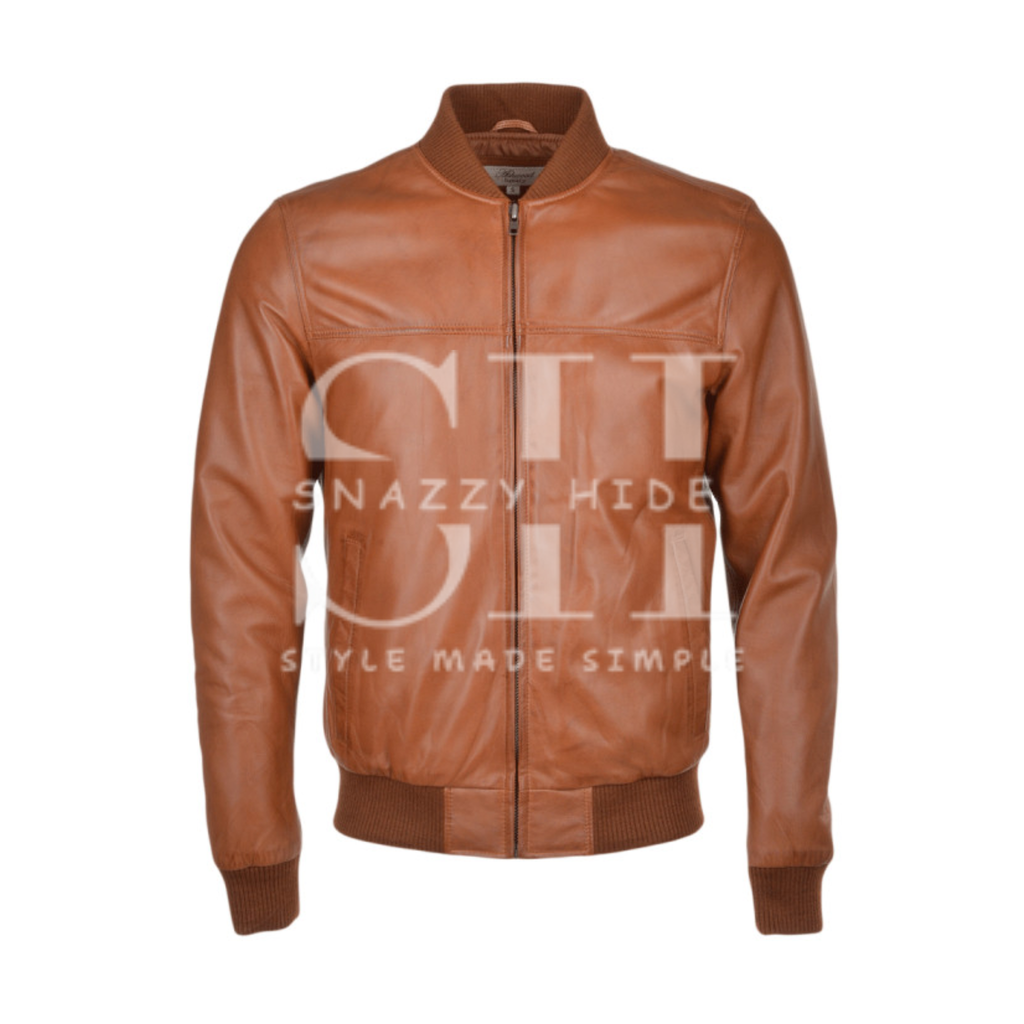 Stylish yet practical, the Men’s Waxed Sheepskin Leather Bomber Jacket in tan brown is a versatile staple — delivering a refined, masculine edge with a touch of rugged elegance.