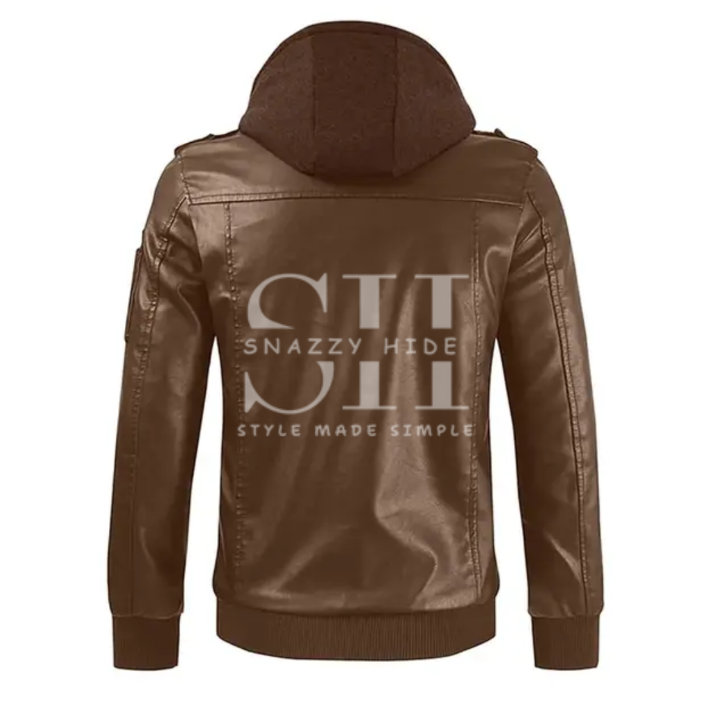 - Design: Classic biker jacket with an attached hood