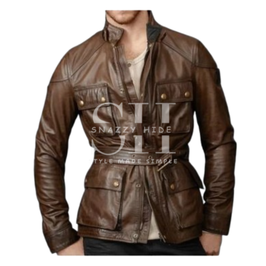 Unlock a new level of rugged character and weather-ready resilience with the Men's Brown Leather Jacket Waxed. This piece undergoes a specialized waxed treatment that imparts a rich, deep luster to the supple brown leather, enhancing its natural grain and creating a distinctive, water-resistant finish. The result is a jacket that looks like it's been on a hundred adventures, offering a timeless, waxed aesthetic that is both practical for the elements and profoundly stylish, with a depth of color that changes beautifully with wear.