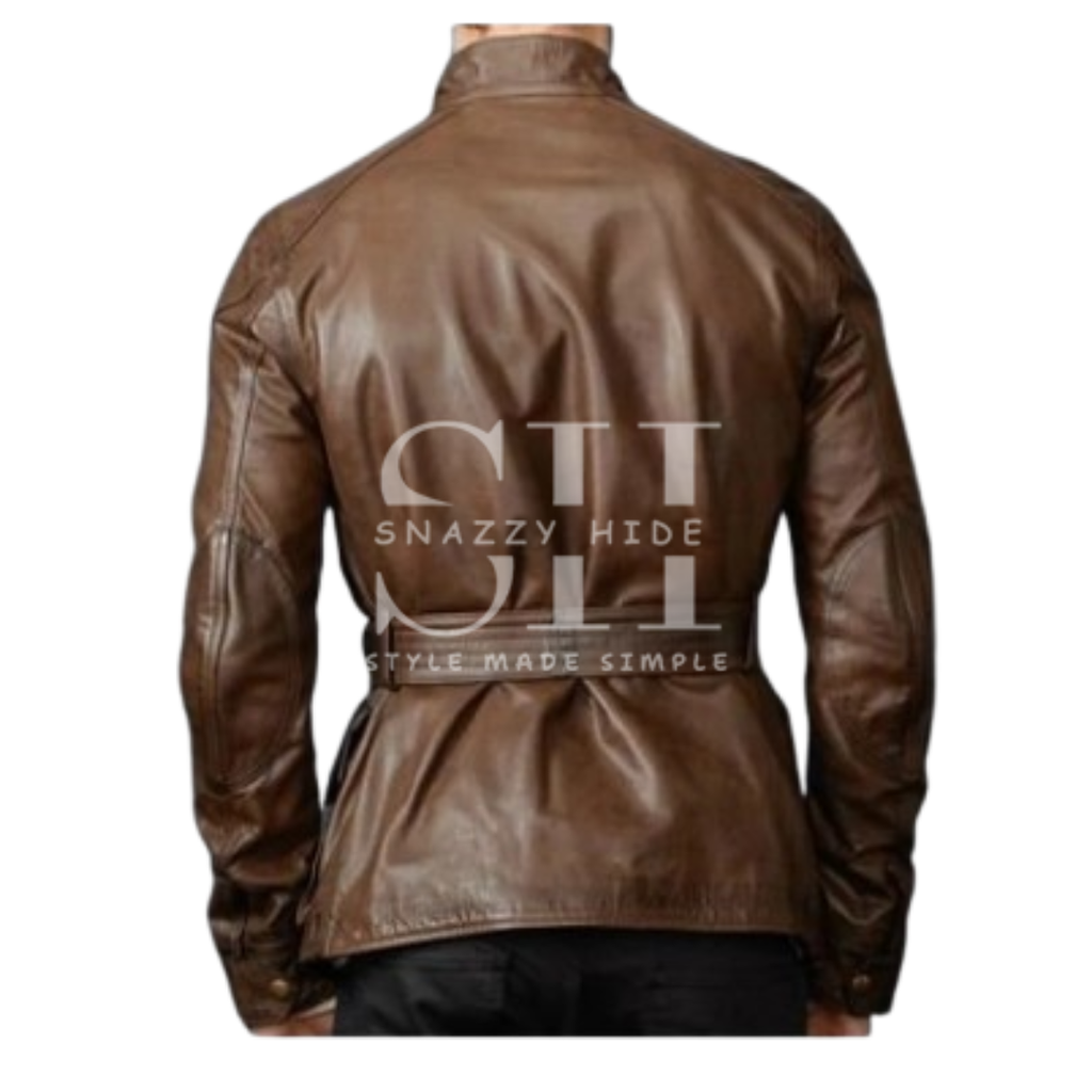 • Design: Rugged brown leather jacket with a waxed finish for enhanced water resistance and a rich, lived-in patina.