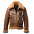 Designed with a buckle strap collar, front zip closure, and adjustable waist straps, this jacket combines military heritage with timeless fashion. The rich brown hue and rugged craftsmanship give it a bold, masculine appeal.
