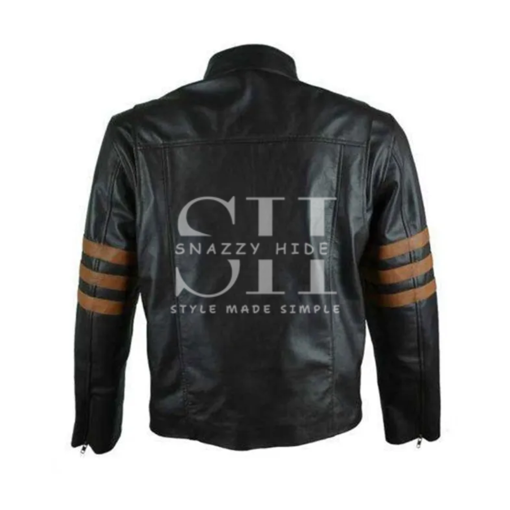 - Design: Classic café racer jacket with contrasting brown stripes on sleeves