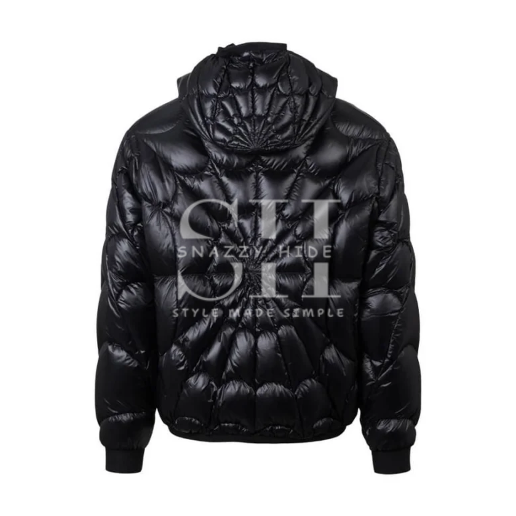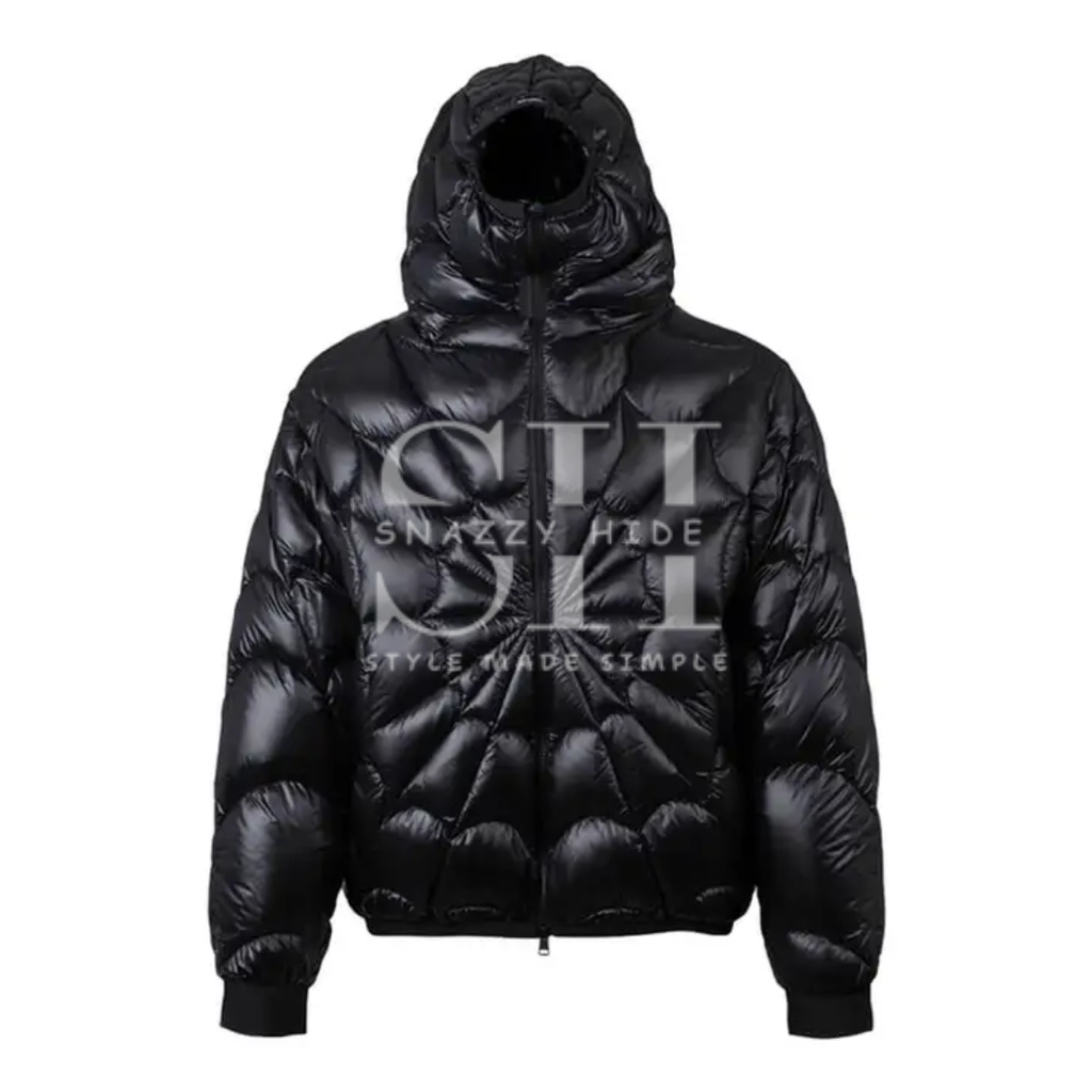 - Design: High-fashion collaboration puffer jacket, likely featuring subtle Spider-Man web motifs or logos integrated into Moncler's signature quilted design.