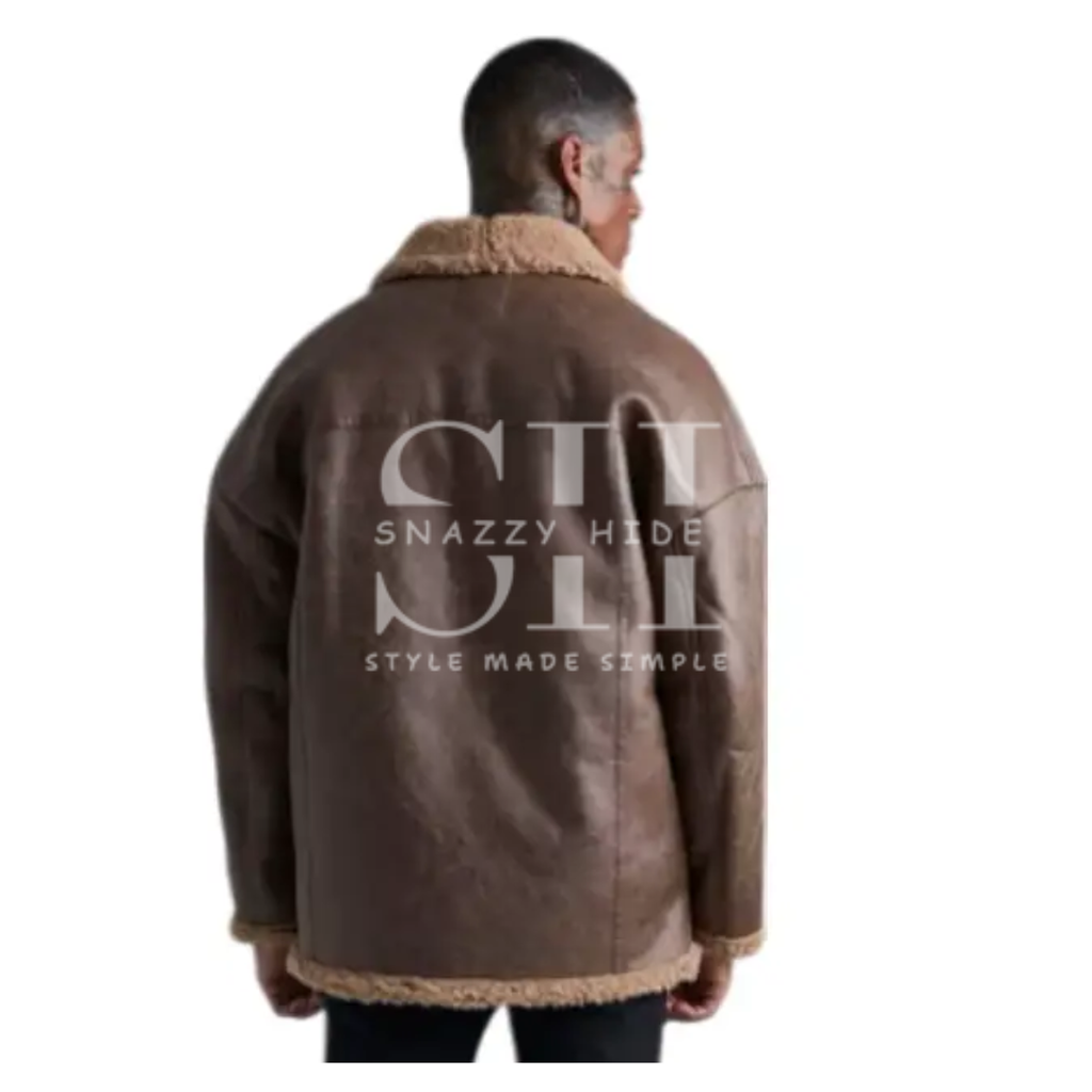 Embrace rugged luxury and timeless style with the Men's Oversized Shearling Leather Jacket. This statement piece combines the rebellious spirit of a classic motorcycle jacket with the ultimate in cozy, high-end comfort. The supple leather exterior and plush shearling interior create a jacket that’s as warm as it is visually striking.