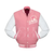 • Design: Classic varsity style in bold Barbie pink and white, featuring contrasting sleeves and retro lettering.