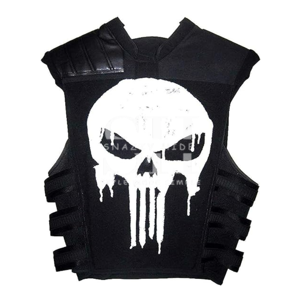- Design: Rugged black leather vest with a tactical, no-nonsense look, embodying the Punisher’s vigilante style.