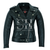 - Features: Asymmetrical front zipper, snap-down collar, and heavy-duty hardware.
