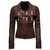 - Design: Sleek, form-fitting brown leather jacket with a modern, tactical-inspired aesthetic.